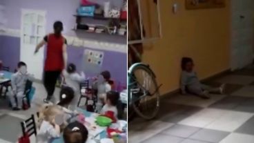 En las imágenes que reprodujo De 12 a 14 (El Tres), se ve a una maestra en un aula infantil que agarra del brazo a la nena de forma enérgica y la reta. Le dice: "Nenas así no quiero yo", y le saca del lugar a los tirones. Después, la niña queda sola y apartada del resto de los chicos y comienza a llorar.