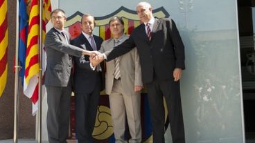 Antes de la presentación en conferencia de prensa, Gerardo Martino pasó por las oficinas para firmar el acuerdo que lo vincula al FC Barcelona para las dos próximas temporadas.
