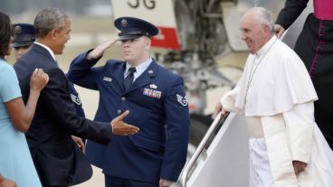 El argentino Jorge Bergoglio fue recibido por Obama y su familia –su mujer Michelle y sus hijas Sasha y Malia–; con el mandatario se saludaron con un largo apretón de manos.