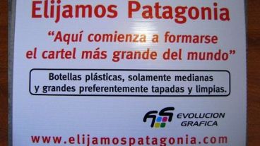 Con la leyenda, "ElijamosPatagonia.com" el cartel, que será captado por Google Earth, mide unos tres kilómetros de largo por unos cien metros de alto y sus letras han sido "dibujadas" con unas 125.000 botellas de plástico, promoviendo el reciclaje, y cenizas del volcán, que entró en erupción en junio del año pasado.