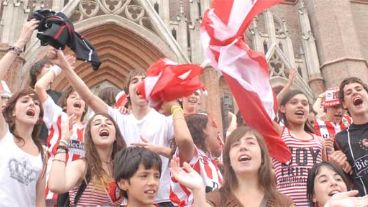 Los simpatizantes del Pincha se agolparon en los alrededores de la Catedral a la espera del ómnibus que luego, cerca de las 13, acercó a los jugadores, que ingresaron a la iglesia por una puerta alternativa.