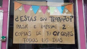 “¿Estás sin trabajo? Pasá e imprimí dos copias de tu CV gratis todos los días”, reza el letrero que pegó el dueño del local.