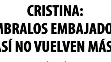 El otro afiche muestra el escudo del club millonario con la inscripción "Cristina: nombralos embajadores así no vuelven más", refiriéndose a la presidenta argentina, Cristina Fernández de Kirchner.