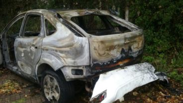 Un Ford Focus color blanco incinerado fue hallado este miércoles por la mañana en Lola Mora y Lorenzini. Sólo tenía patente en la parte delantera pero no es la de ese auto, según fuentes judiciales. Se presume que podría estar involucrado con los tres crímenes sucedidos el pasado domingo.