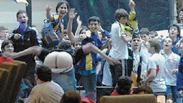 A ver. La cosa es así. La toma, cuyo autor es Enrique Galletto, muestra, desde adentro del bar Metropolitan, adonde los hinchas fueron a protestar y terminaron arrojando huevos y rompiendo vidrios, a un grupo de pibes cantando y saltando. Uno de ellos está de espaldas, con los pantalones bajos, exhibiendo la cola a los clientes del local, algunos de los cuales reaccionan con pudor.