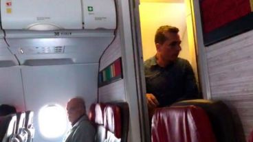 Pero como ya había sido emitido el aviso de que había que volver a los asientos y ponerse el cinturón de seguridad para el aterrizaje, uno de los tripulantes fue a golpearle la puerta para que se apurara.