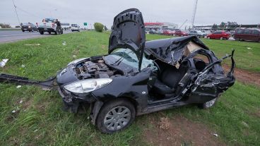 De los tres carriles de la avenida, funcionaban dos a la espera de que la policía retire los rodados accidentados.