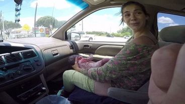 Un video captura el momento maravilloso en que una mujer da a luz. Sólo que el alumbramiento ocurre en el interior del auto en movimiento, mientras los futuros padres se dirigen al hospital.