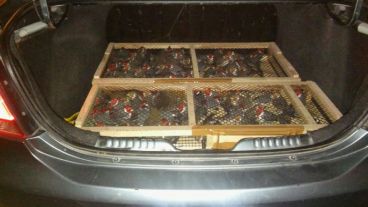 Según informó el Ministerio de Seguridad a través de un comunicado, se encontraron 280 cardenales, 31 federales, 25 jilgueros y 4 reinas mora en el baúl de un Volkswagen Voyage.