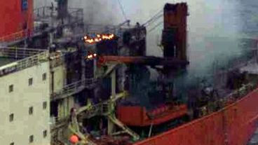 El incendió se habría originado en el compartimiento de generadores auxiliares, según informó la fuerza en declaraciones televisivas.