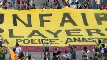 Las manifestaciones en el aeropuerto de Río fueron promovidas por una organización que se identificó como Frente Internacionalista de los Sin Techo y apoyada por algunos huelguistas, provocando un gigantesco embotellamiento que afectó a cientos de pasajeros que se dirigían a la terminal.