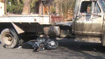 El hecho se produjo alrededor de las 14 e involucró a una moto de mediana cilindrada y a un transportador de volquetes, que tras el impacto terminó arrastrando bajo sus ruedas al rodado, causando heridas de consideración a su conductor, cuya identidad y edad no habían sido confirmadas.
