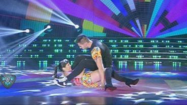 Sonaba “Corazón mentiroso”, de Karina y Juanita y Facundo Arrigoni disfrutaban el ritmo. Un golpe de cadera acá, otro allá... hasta que el bailarín corrió hacia la actriz, dio un salto y… ¡terminaron los dos por el piso!