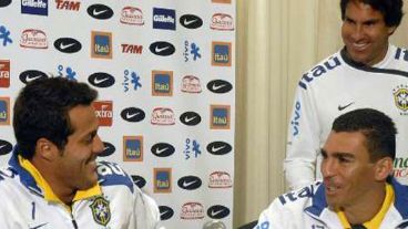 Integrantes de la selección brasileña de fútbol brindaron una conferencia de prensa este viernes en el hotel Holiday Inn de Dorrego al 400 donde se encuentran alojados.