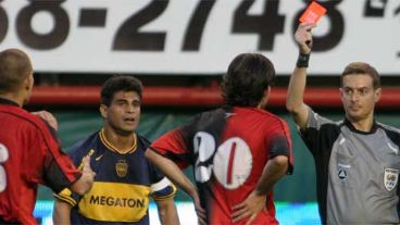 Boca comenzó manejando la pelota y atacaba a los rojinegros por arriba, donde Justo Villar mostró varios problemas a la hora de salir a cortar. Para colmo, Newell’s se vio más complicado a partir de la expulsión de Diego Gavilán a 30 minutos del primer tiempo por doble amarilla, producto de dos faltas bruscas. Hasta ese entonces, el equipo de Nery Pumpido sólo había contado con un tiro libre que Cardozo apenas desvió.