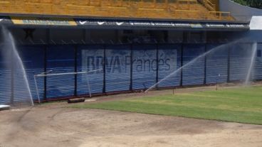 “Toda la franja central del campo de juego ya tiene césped nuevamente y en esta etapa es clave el riego constante porque los panes se van poniendo algo amarillos al principio, por el corte de raíces, movimiento y calor, pero el riego continuo y las fertilizaciones que ya comenzaron ayudan a acortar ese tiempo de stress”, señala la web oficial del club.