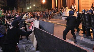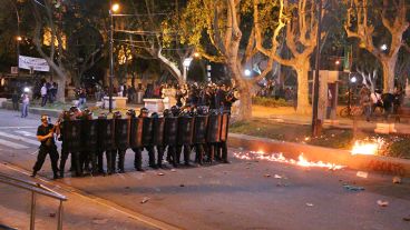 Los uniformados entonces reprimieron con balas de goma pero los cascotazos continuaron. Y las balas también. En el aire, además, se sentía el olor característico de los gases lacrimógenos. Diez manifestantes, tres periodistas y seis policías resultaron lastimados. Entre los uniformados, había tres agentes mujeres y un jefe del Cuerpo Guardia Infantería. Un policía del Comando fue lesionado con una bala de plomo en la región lumbar.