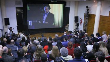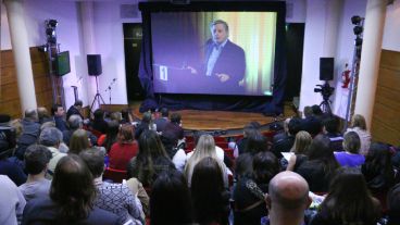 La sala de la Casa del Foro tiene ocho hileras de asientos, de entre ocho y 13 sillas cada una. Al frente está la pantalla que transmite por videoconferencia lo que ocurre en la sede central de Buenos Aires. El ministro de Energía nacional, Juan José Aranguren, es el primero en hablar a las 9.20.
