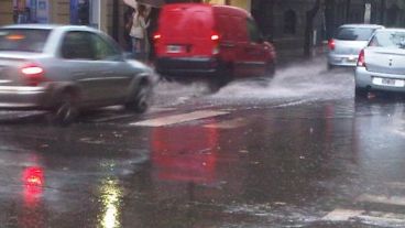 Los milímetros caídos no eran muchos pero comenzaron a precipitar con intensidad cerca de las cuatro de la tarde. Las bocas de tormenta, muchas veces receptáculos de basura tirada en la vía pública o de las hojas caídas, no dieron abasto y las calles céntricas se inundaron. Una vez más, automovilistas apurados salpicaron a los transeúntes que estaban más cerca del cordón.