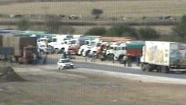 En declaraciones a Radio 2, Gustavo Franco, director de esa cartera, señaló que la autopista Rosario-Santa Fe está cortada a la altura del kilómetro 30 y en Arocena. "Por ahí no pasa ningún tipo de vehículos, los transportistas impiden el paso de camiones de carga y esa misma masa de camiones acumulada impide el paso de autos particulares", explicó.