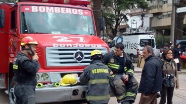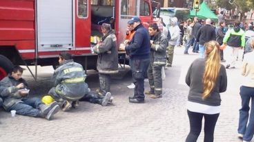 El secretario de Obras Públicas municipal, Omar Saab, que se esfuerza en apuntalar el edificio para evitar otro derrumbe, cruza el vallado. Se saca el casco amarillo de trabajo y se sirve una porción de pizza al paso. Refugiados detrás de otro autobomba, sentados en el piso y de espaldas a la tragedia, seis bomberos también almuerzan: comen comida caliente. Dos de ellos, con sus caras sucias y cansadas, ensayan una risa liberadora, ajena al lugar. En ese momento llegan los bolicheros y anuncian que sólo habrá actividad nocturnas hasta la 1.30, y muchos ni siquiera abrirán sus comercios. No hay clima de fiesta. Nadie necesita que le expliquen eso en la esquina de la catarsis.