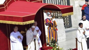 Antes del inicio de la ceremonia, Francisco recorrió la plaza San Pedro en un jeep descubierto e incluso se bajó y se acercó a saludar a un enfermo.