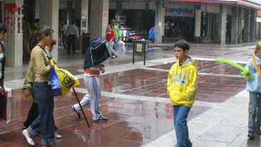 Pero de repente, mientras la llovizna se hacía cada vez más intensa, surgieron desde las esquinas los gritos oportunistas: “Paraguas, paraguas”. Era el momento que esos comerciantes de la necesidad estaban esperando desde la mañana, agazapados, atraídos por lo gris del cielo.