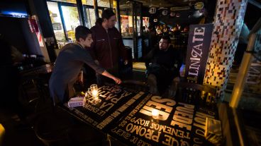 El móvil de Telenoche (El Tres) recorrió algunos de los negocios, que lucían abiertos como cualquier jornada pero todas las mesas tenían colocadas una vela. Además, se les entregaba a los comensales un folleto en el que explicaban la realidad que viven.