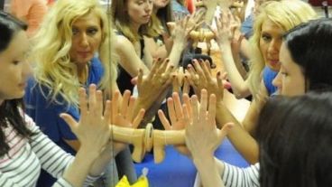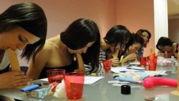 El entrenamiento tiene unas tres horas y media de duración y, según las fotos que trascendieron, resulta curioso ver a las mujeres con consoladores, profilácticos y en pose imitando formas para brindar placer.