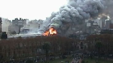 Aquella jornada, una movilización gremial de operarios de la Empresa Provincial de Energía y del Sindicato de Empleados Municipales había copado plaza San Martín y una de las bombas de estruendo alcanzado el edifico.