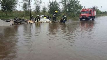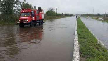 El estado de la ruta 33, entre Pérez y Zavalla asemejaba a una inmensa laguna, producto de las lluvias que se suceden sin pausa en la zona. El agua acumulada hacía muy difícil el tránsito en autos y motos aunque permitía el del transporte de carga. Se extendía hacia los campos, que se mostraban cargados de agua. La situación continuaba hasta Pujato, tramo en el que tampoco se podía conducir con normalidad.