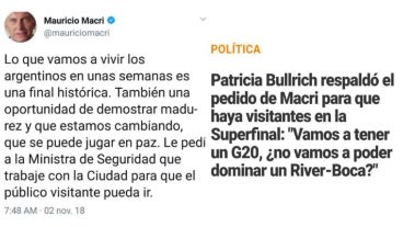 Después del caos, como Twitter no perdona, las frases del presidente Mauricio Macri y la ministra de Seguridad Patricia Bullrich sobre su intención de jugar ambas finales con público visitante se hicieron virales.