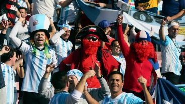 El Nacional de Santiago está colmado de hinchas de Chile, que buscan ver a su selección ganar la Copa América por primera vez. Entre ellos, puñados de argentinos se abrieron paso. Las fotos