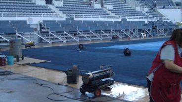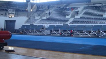 En otro sector, en tanto, se trabajaba en la colocación del aire acondicionado, mientras que también se trabajaba en el armado de platea para llevar a doce mil personas la capacidad del estadio. También había tareas de reacondicionamiento de los sectores de vestuarios. En el exterior del polideportivo hay reparación de veredas, puesta a punto de las luminarias, trabajos de pintura y parquización.