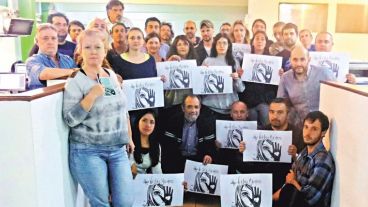 En muchas casos también las y los trabajadores de la comunicación acompañaron esas acciones con fotos grupales (ver galería) como ocurrió en la Municipalidad y el Concejo, entre otros puntos.