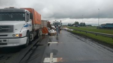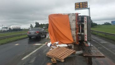 Las copiosas lluvias de las primeras horas de este martes complicaron el tránsito en la autopista a Buenos Aires, que hasta la madrugada estuvo, además, cortada por un piquete. Ahora, la mano que ordena el tráfico hacia Rosario estaba cortada a la altura del kilómetro 271 por el vuelco de un camión. Y al mediodía volvió la protesta con bloqueo incluido en el acceso a la ciudad.