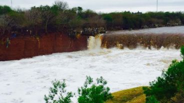 Allí ya se registró esta semana un desborde parcial del Saladillo, lo que produjo el anegamiento de los reservorios (lugares reservados para la acumulación temporal del agua). El afluente corría con tanta fuerza que la tradicional cascada se corrió unos cien metros, producto de la erosión del lecho.