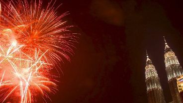 1 de 2 | Sacerdotes realizan una ceremonia de purificación en Tokio (EFE).2 de 2 | En Kuala Lumpur, fuegos artificiales frente a las torres patronas (EFE).