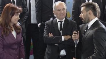 El Pocho Lavezzi se escondió cuando la jefa de Estado le pidió que tomar el micrófono. "Vení vos, que dicen que sos el sex symbol. No te vas a achicar ahora", lo convocó.