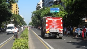 El paso de los camiones, entre las 8.45 y las 10.30 de la mañana, fue comparable al desfile de grandes elefantes por el centro de una ciudad. Los bocinazos ensordecedores, cada uno con sonoridad diferente, levantaron a los aficionados y enloquecieron a los chicos.