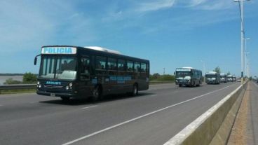 Los agentes arribaron en 8 micros y 20 patrulleros de la Federal, y en una primera instancia se apostaron en a la delegación local que la fuerza nacional tiene en calle 9 de julio 233.