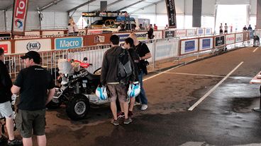 “¡Por ahí no, por ahí no!”, se escuchó gritar a un hombre encargado de la seguridad. Una camioneta equivocó el camino y se llevó puestos varios conos en el playón de espera, donde otra persona provista de pilotin amarillo les hacía señas a los pilotos bajo la copiosa lluvia del mediodía para que acomoden prolijamente sus coches.