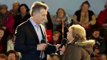Arriba de un escenario dispuesto a lo estudio de televisión, en medio de tribunas repletas de jubilados y funcionarios de Cambiemos, Macri hizo el anuncio de su propuesta e invitó a tres personas de la audiencia a compartir su batalla contra el Estado para cobrar los haberes.