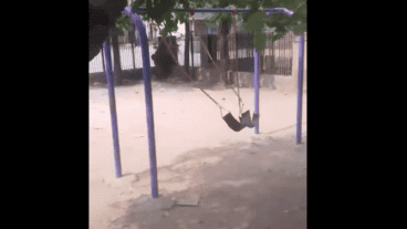 En el video, que pronto se hizo viral en Youtube, se aprecia que la hamaca de al lado se mantiene completamente quieta, mientras el primero se mueve cada vez con más fuerza hacia adelante y hacia atrás.