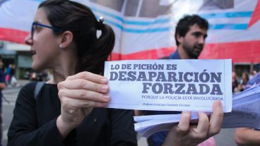 Los ejes de la convocatorio fueron el pedido para que la investigación cambie de carátula a “desaparición forzada de persona” (ver foto), con la participación de policías provinciales, y por tanto sea investigado por la Justicia federal, y no por la local.