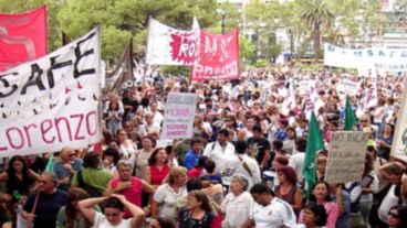 Según los dirigentes docentes, el paro que realizan este martes los maestros públicos y privados de la provincia es "contundente". Se trata de la primera medida de fuerza del sector, que pide aumento de sueldo, contra la gestión de Hermes Binner. La medida de fuerza se planteó con movilización incluida, desde la Plaza 25 de Mayo a la Plaza San Martín.