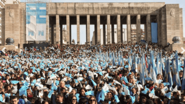 En el escenario del Monumento a la Bandera, la cantante Soledad Pastorutti cerró el acto interpretando “La viajera”, junto con el coro de estudiantes santafesinos y acompañada por los 15 mil chicos que fueron protagonistas de la jornada.