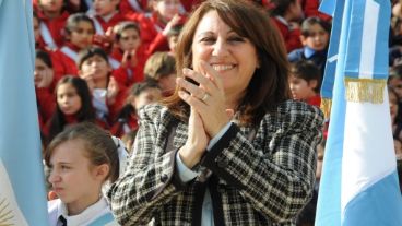 La intendenta Mónica Fein encabezó este miércoles en el Patio Cívico del Monumento la primera promesa de lealtad a la bandera del año de 700 chicas y chicos de escuelas de distintos puntos del país.