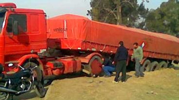 Por otro lado, también este miércoles, un semirremolque Scania de origen brasileño y cargado de hierro desobedeció el operativo de tránsito e intentó esquivar el piquete pasando por el costado, sobre la zona de césped, y quedó varado en el lugar por el hundimiento del suelo.