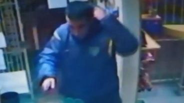 Según las imágenes captadas por la cámara de seguridad del comercio "Kiosco Max", ubicado en la calle Lavalle 800, el ladrón sorprendió al empleado cuando atendía a un hombre.